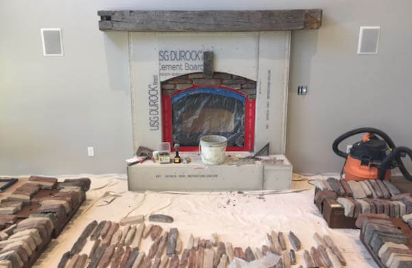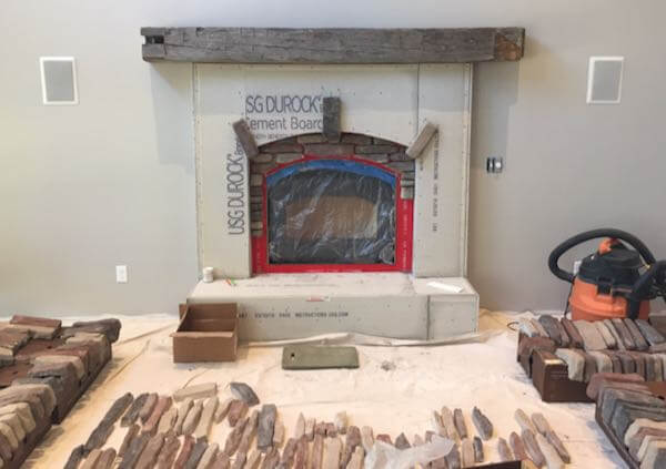 After a few days of laying the stacked stone, the stone fireplace was complete.