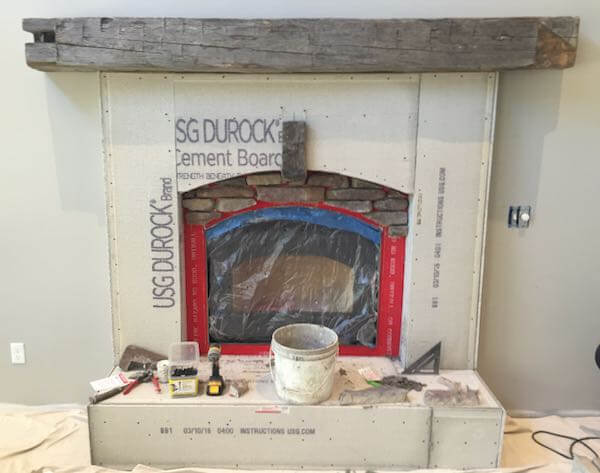 Non flammable material was placed around the fireplace and on top of the hearth.