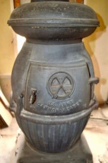 The U.S. Army Cannon Heater is a solid cast iron pot belly stove and was used in World War I, World War II, and the Korean Conflict to keep bunkers warm for the U.S. troops.