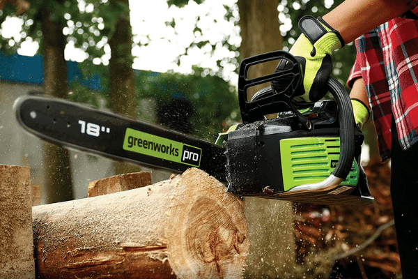 Pro-series Greenworks saws are equipped with 60V batteries, which develop power compared to a 42cc gas powered chainsaw.