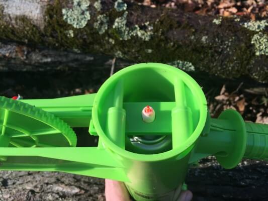 Then, rotate the wheel backwards until the tab on the wheel rests against the trigger.