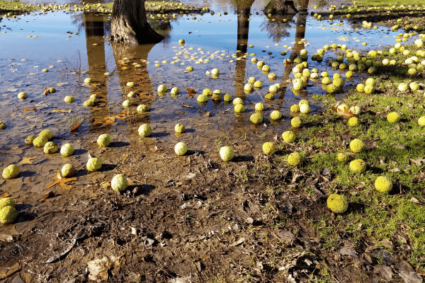 Occasionally, osage orange trees were also used to keep free-ranging livestock out of vegetable patches and corn fields.