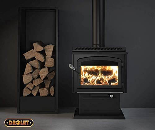Pedestal style wood stoves like the Drolet HT3000 offer a modern and simplistic design esthetic.