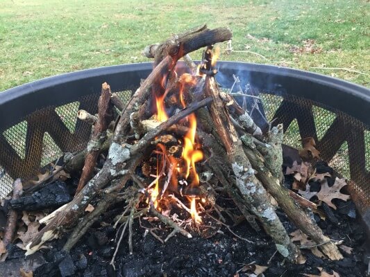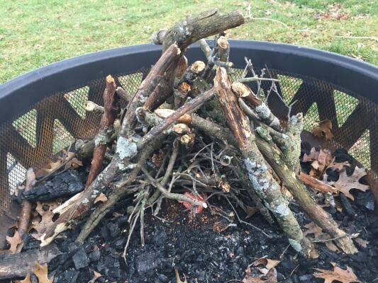 To test the 1/4 chuck of fire starter I quickly picked up a few branches that have been lying around the yard.