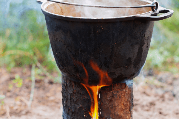 You can easily place a kettle, pan, or pot atop the log, allowing the flame to heat it.