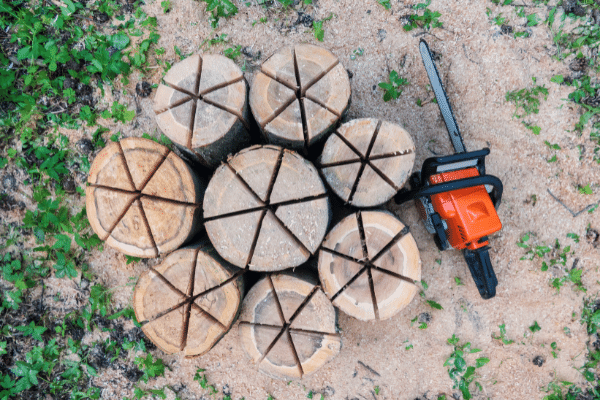 You can use a hatchet, splitting axe, or of course, a chainsaw to cut your logs.