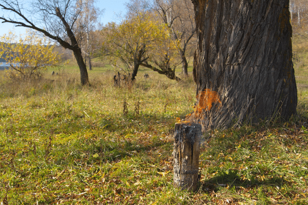 After completing the steps above, take your matches or lighter and ignite the kindling or accelerant you placed within the cuts.
