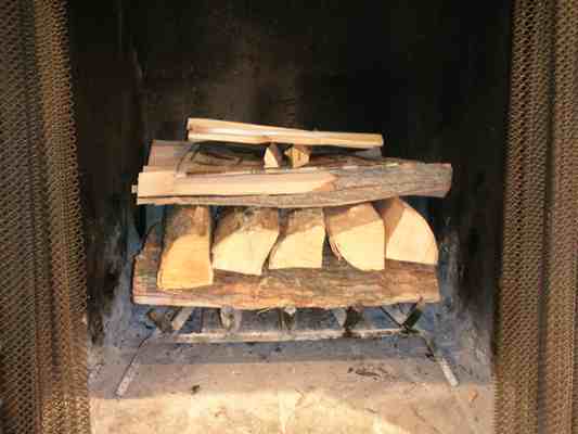 You start your fire by placing large pieces of wood on the bottom and then place the kindling on top.
